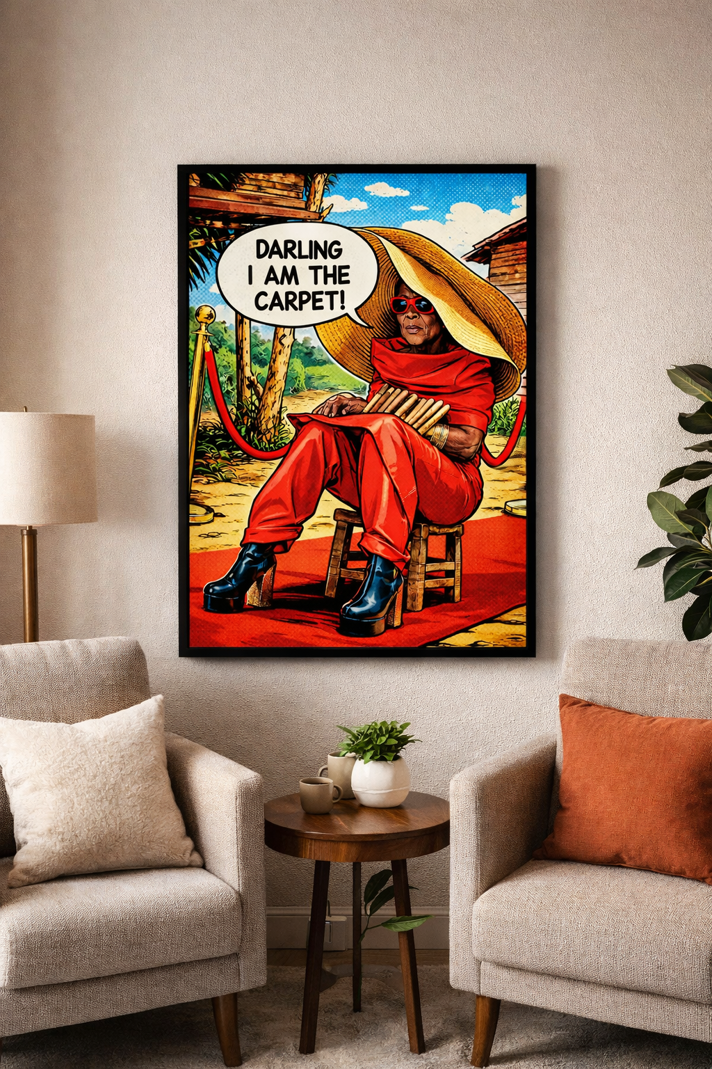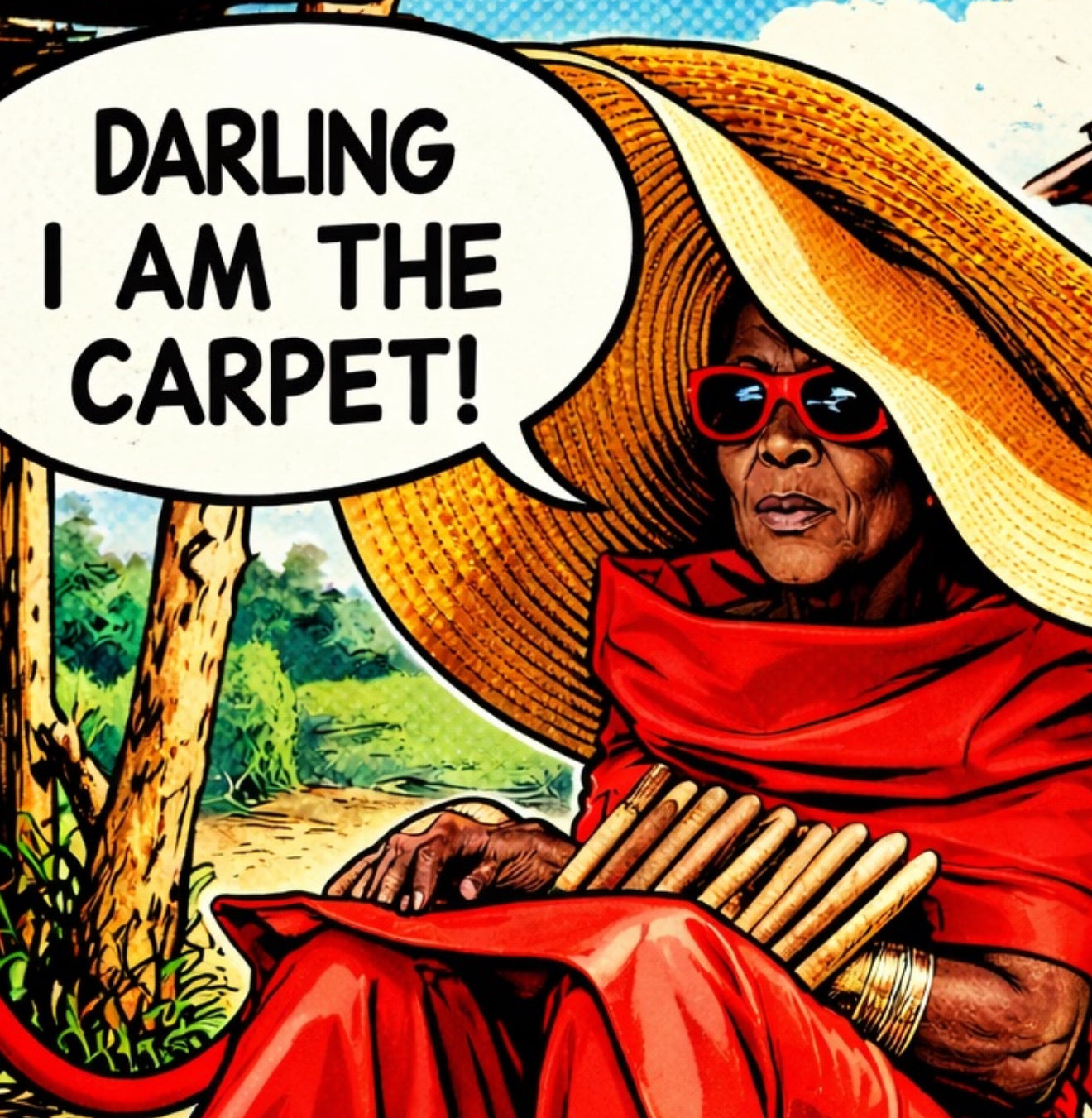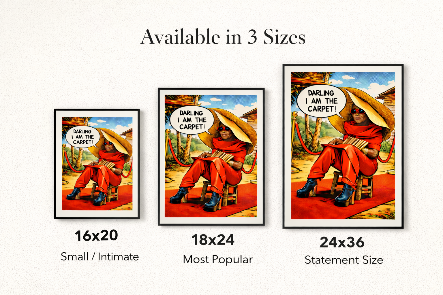 Darling, I Am the Carpet is a bold, comic-style archival art print, marking the first comic print ever published for Legendary Glamma. Rooted in visual storytelling, the piece celebrates confidence, legacy and unapologetic presence through a graphic, pop-art lens.